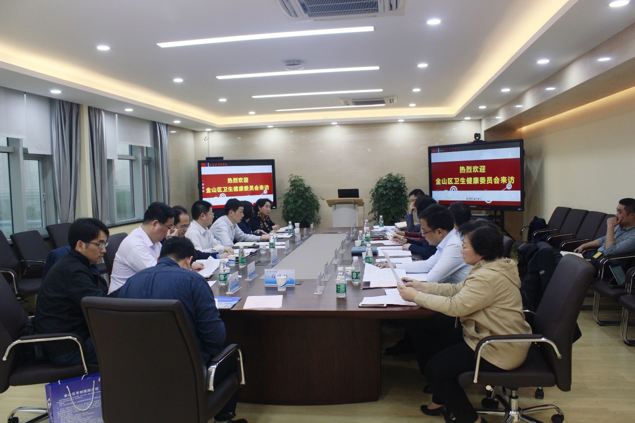 4月9日,金山区卫生健康委员会书记孙群荣、主任吴靖平,市六院金山分院院长胡军,金山区卫生学校校长周芬华等一行来访我校,我校党委副书记于莹与相关部门领导同来访嘉宾座谈。