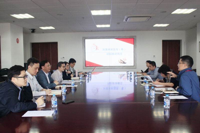 2018年我校与联新国际医疗集团签署了具有实质性的医学教育、医疗服务“二位一体”的战略合作协议,“上海健康医学院联新医院管理研究院”挂牌成立。为推进该合作项目的顺利开展,5月17日,禾新医院执行院长徐卫卿一行与学校党委副书记于莹以及相关职能部门、二级学院召开了合作项目推进会。