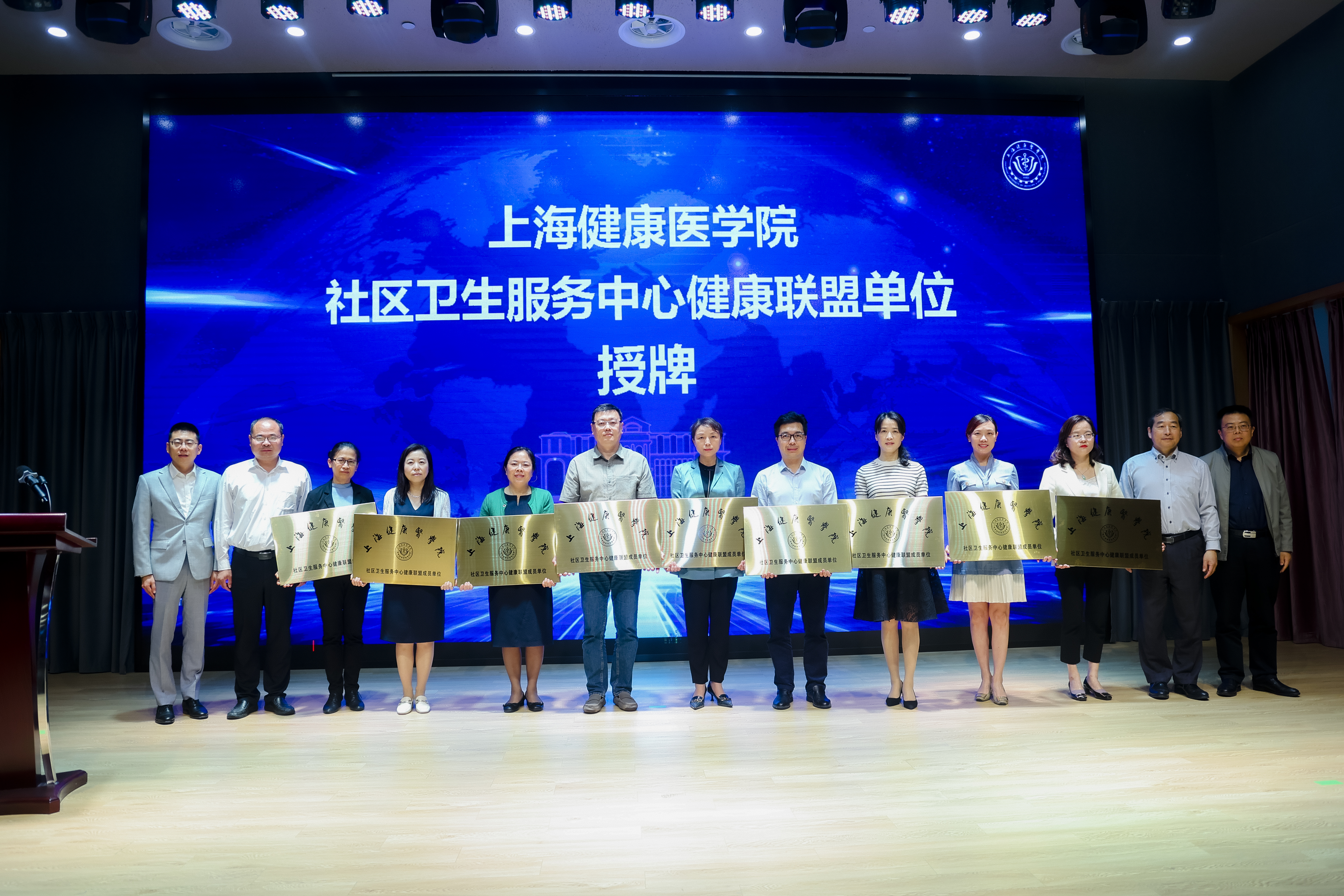 沈国芳、郁东海和赵辉茂为浦东新区周浦、王港,奉贤区奉浦、金汇、南桥、平安、海湾、西渡、金海、庄行、四团,杨浦区新江湾城、宝山区顾村、张庙、罗店等15家社区卫生服务中心进行授牌。社区主任上台接过健康联盟成员单位铜牌的同时,也意味着接住了上海健康医学院社区健康联盟大家庭的橄榄枝。社区将与上海健康医学院健康联盟密切联系,协同发展。