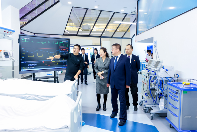 签约仪式前,来访嘉宾参观了上海市智能医疗器械与主动健康协同创新中心、健康互动实践中心。