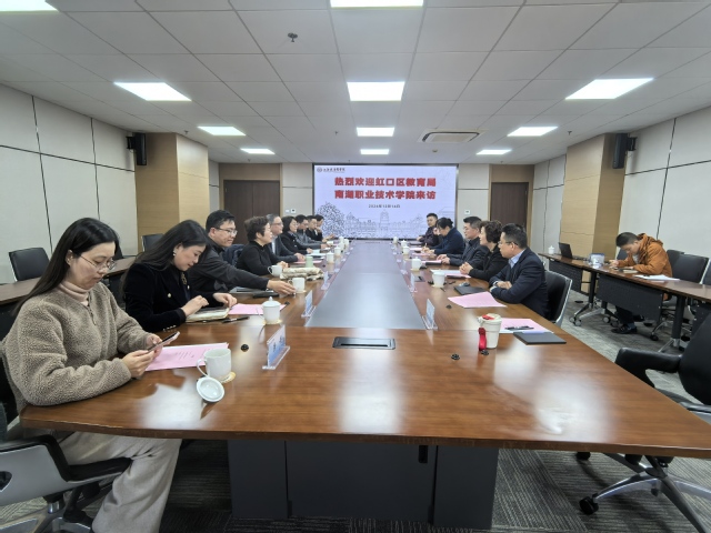 12月16日下午,虹口区教育工作党委书记、教育局长孙磊,虹口区教育局副局长、上海南湖职业技术学院党委书记李琰,党委副书记、院长朱建柳,副院长周一峰等一行来访我校。校长吴韬,党委副书记、副校长唐红梅,教务处处长王莉,产学合作处处长张苏华,护理与健康管理学院院长朱爱勇,科技处副处长陈建俞等参加了座谈交流。会议由唐红梅主持。