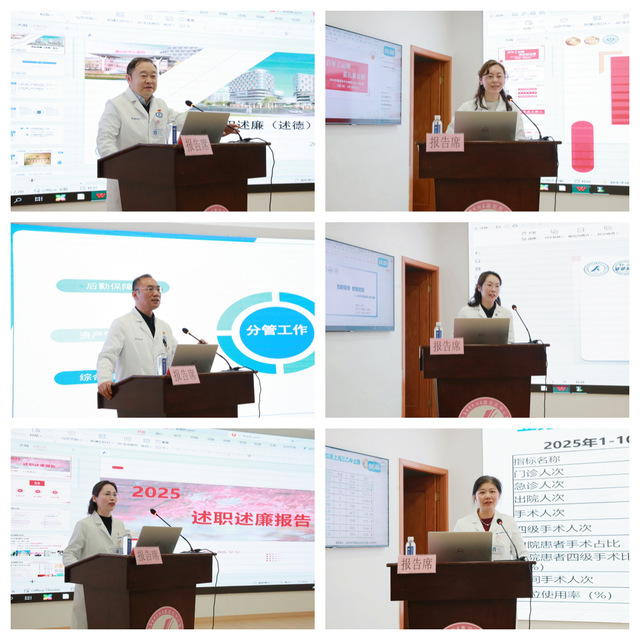 医院党委副书记、纪委书记朱成英,执行院长曹励欧,党委委员、副院长徐国海、周争,副院长高广峰以及工会主席武燕,分别作个人述职报告。汇报中,各位领导立足年度分管领域工作实际,系统梳理了年度重点工作完成情况,突出展示了工作亮点与特色成效。同时,秉持问题导向,深入剖析了当前存在的短板与不足,并针对性提出了具体可行的改进思路与整改举措。此外,报告还结合医院发展新形势与新要求,就如何进一步优化管理流程、提升管理效能等方面,提出了前瞻性的初步规划与工作设想。