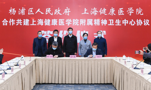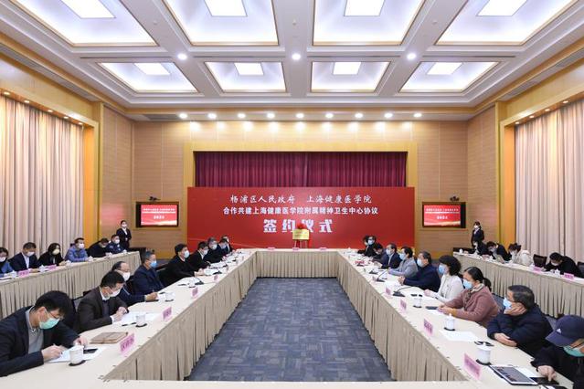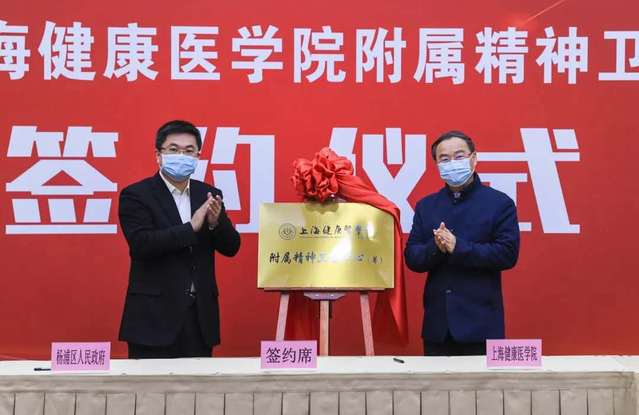 在杨浦区人民政府与上海健康医学院合作框架下,双方将共同努力把区精神卫生中心建设成为大学附属医院,学校相关学院及处室、区府办、区卫健委等部门、杨浦区精神卫生中心的主要领导出席仪式。(产学合作处)