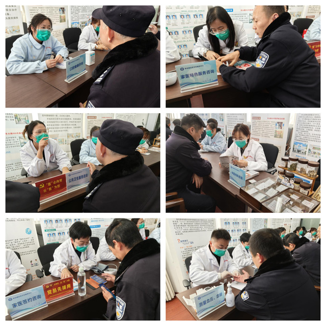 现场设置了多个特色咨询区域。家医健康与签约咨询区里,团队成员详细介绍家医签约服务内容与优势,如优先预约就诊、专家号源优先转诊等,民警们踊跃提问,一位民警感慨:“签约后看病有专属医生,抢专家号也不用操心,太踏实了!”家医特色服务咨询区针对体重管理、伤口护理等问题,为民警答疑解惑。中医内科咨询专区聚焦三九贴敷养生服务,中医医生不仅讲解三九贴对呼吸系统、骨关节疾病的调理作用,还针对民警常见的肩颈劳损、失眠等问题,通过望闻问切精准辨证,量身定制养生方案,针灸、耳穴压豆等传统疗法让民警感受中医独特功效。口腔健康咨询区,家医团队用便携设备为民警免费检查口腔,针对牙结石、早期龋坏等问题给予专业建议并建立健康记录。血压、血糖测量区,医生们仔细检查民警身体指标,耐心询问病史,提供全面健康评估与治疗建议。公共卫生服务健康咨询区则普及流感防控知识,免费派发大肠癌早期筛查标本盒并指导采集。