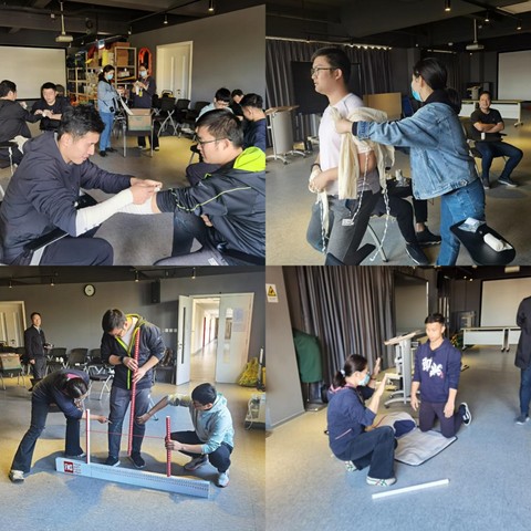 下午的互动实训交流在临床实训中心举行,秦建晔、孙瑷沁、张少一老师现场演示了BLS心肺复苏,三位老师亲自指导每一位学员老师并确保每位老师都学会有效的心肺复苏,在每个细节上都力求完美,如按压深度,频率等等。陈千红老师讲授了运动损伤处理以及康复,王丽岩老师讲授了预防运动损伤的功能动作筛查,两位老师亲自示范并请学员老师们做示范并帮助纠正和给出建议,每位老师所学的“本领”都可能在将来派上用场。