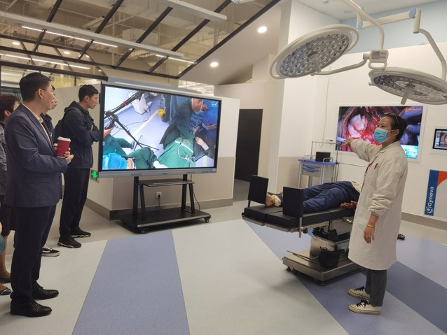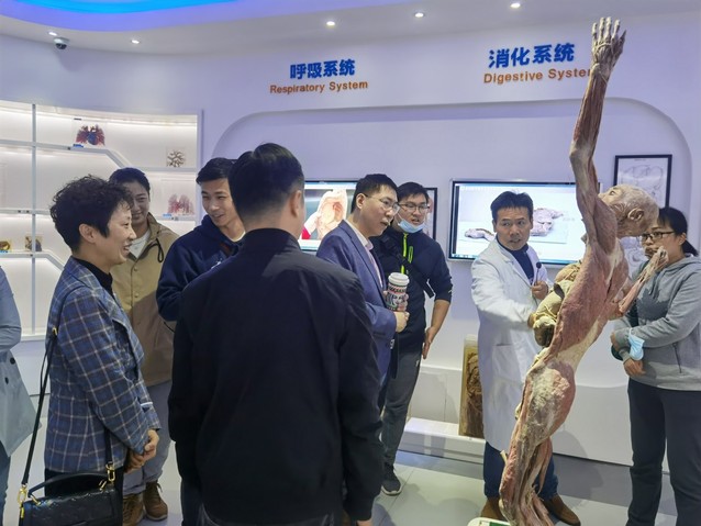 上午的实地调研分别参观了基础医学互动学习与实训中心和健康互动实践中心。吴学平老师专业生动的对基础医学互动学习与实训中心的13个模块一一详述生动讲解,老师们还亲身体验了3D眼镜看器官,看到了立体的器官切面都惊叹无比。真实标本和吴老师的专业讲解让列席的老师们对人体器官有所了解,这种虚实结合的互动学习的教学结合模式将枯燥的“教”转变为有趣的“学”,每位老师都收获颇多。基础医学互动学习与实训中心的每位老师都在努力以科技互助之手,推开健康医学探索之门。秦建晔老师带领大家参观了我校的健康互动实践中心,通过模拟的各个医院场景逐一介绍并介绍了规范的处理方法,比如大到车祸发生以后的模拟急救现场,小到医院的手术缝合等等。我校的硬件设施和软件设施都受到了老师们的极大赞扬和肯定,并表示希望可以建立长期的合作关系。